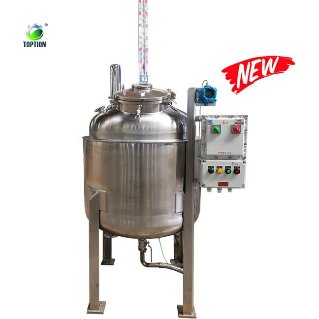 Rezervorul de stocare TOPPTION din oțel inoxidabil acceptă personalizareprofesională, personalizare cu strat dublu, un singur strat și personalizare a gamei largi de capacitate. Pentru alcool pre-congelare înainte de extracție centrifugală etanol, alegeți un frigider dublu-strat, de potrivire pentru a obține efectul de pre-congelare. Pentru depozitarea lichidelor după filtrare, se selectează un rezervor de stocare cu un singur strat, care este utilizat în principal pentru tamponare înainte de a intra în evaporator pentru a atinge scopul hrănirii stabile și continue.